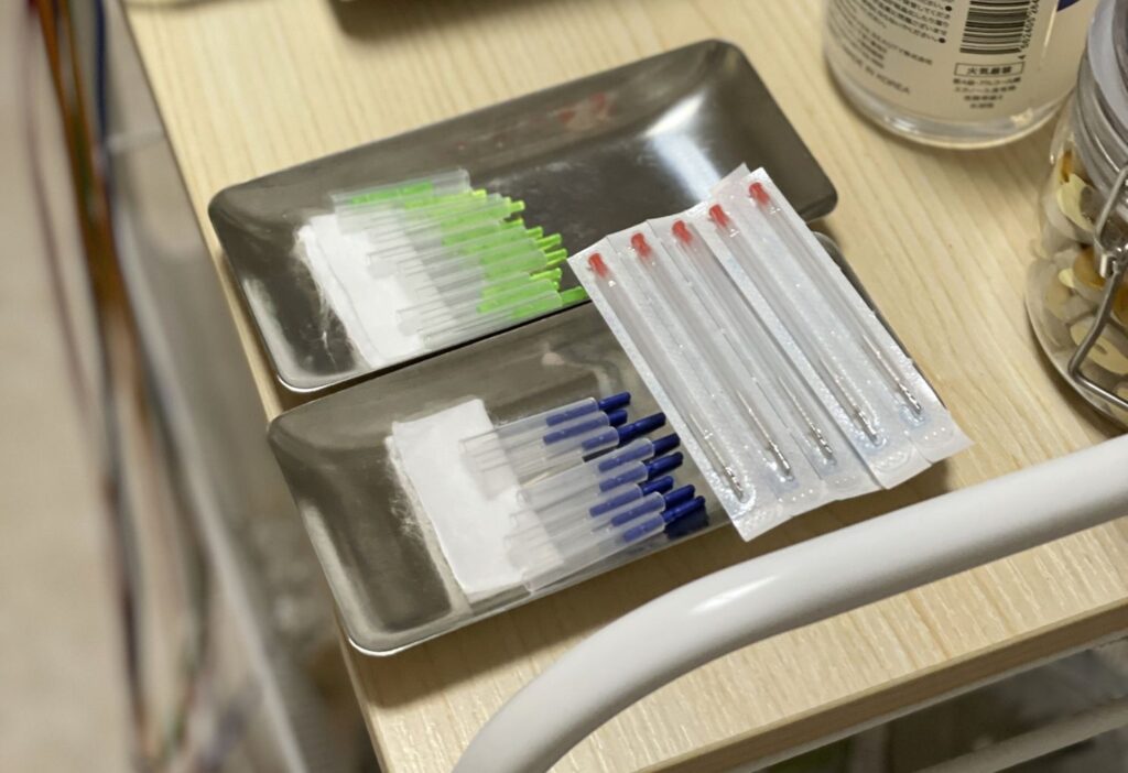 当院で使う鍼は注射針の約3分の1の太さで、刺したときの皮膚の抵抗が少ないです。初めての方でも安心して受けていただけます。