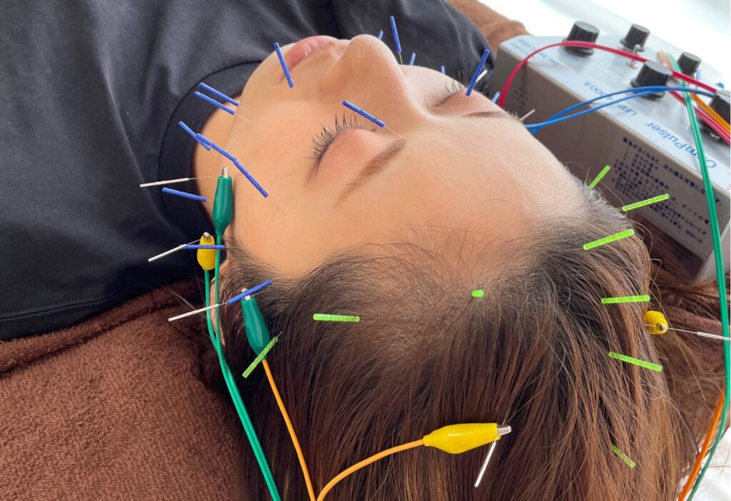 電気を流す美容鍼はお顔の筋肉を動かし、キュッと引き締めます。